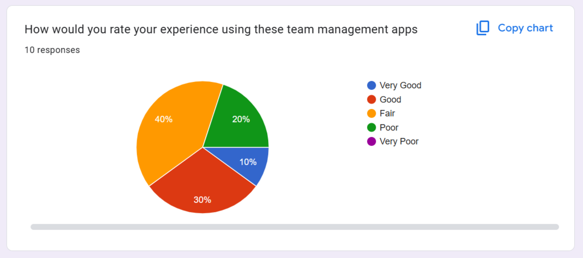 We asked users to rate there experience using a team management app and reports shows that users had a good experience with existing apps but there were still room for improvement