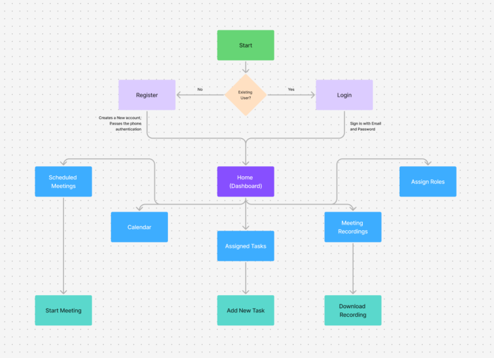 Before jumping into the design, I created User Flow Diagrams to map how users navigate the platform.